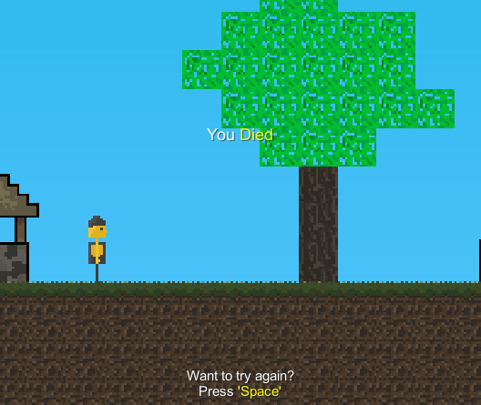 Y por último, creé las etiquetas en pantalla usando UI Canvas para mostrar cuándo muere el jugador y también una indicación de qué botón presionar para reiniciar el nivel: