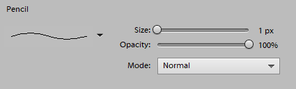 - Seleccione la herramienta Lápiz y configure su Tamaño en 1 px y Opacidad en 100%