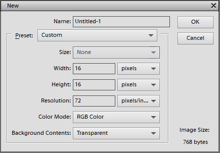 - Establezca el ancho y la altura en algo pequeño (en mi caso, comenzaré haciendo un mosaico de suelo, por lo que el ancho y la altura se establecen en 16)