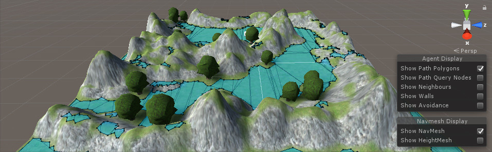 NOTA: Para evitar que el jugador camine sobre las colinas, regrese a la pestaña Hornear y disminuya el ángulo de pendiente máxima y luego vuelva a hornear la malla de navegación.