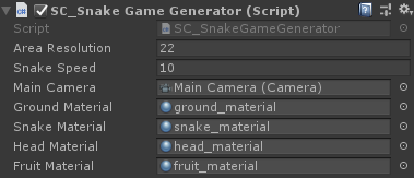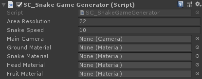 - Adjunte el script SC_SnakeGameGenerator.cs al objeto _GameGenerator