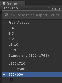 - Cambie la resolución de la vista del juego para que el ancho y la altura sean iguales (por ejemplo, 600 px x 600 px)