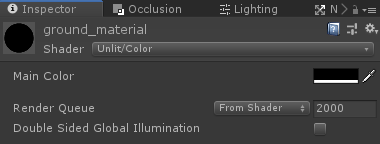 Para ground_material cambie su Shader a Unlit/Color y cambie el Color principal a negro: