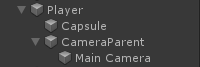 - Crea un nuevo GameObject y llámalo "CameraParent" y muévelo dentro del Objeto "Player", cambia su posición a (0, 1.64, 0)