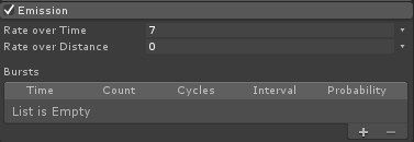 - Agregue un componente ParticleSystem al "Particles" GameObject